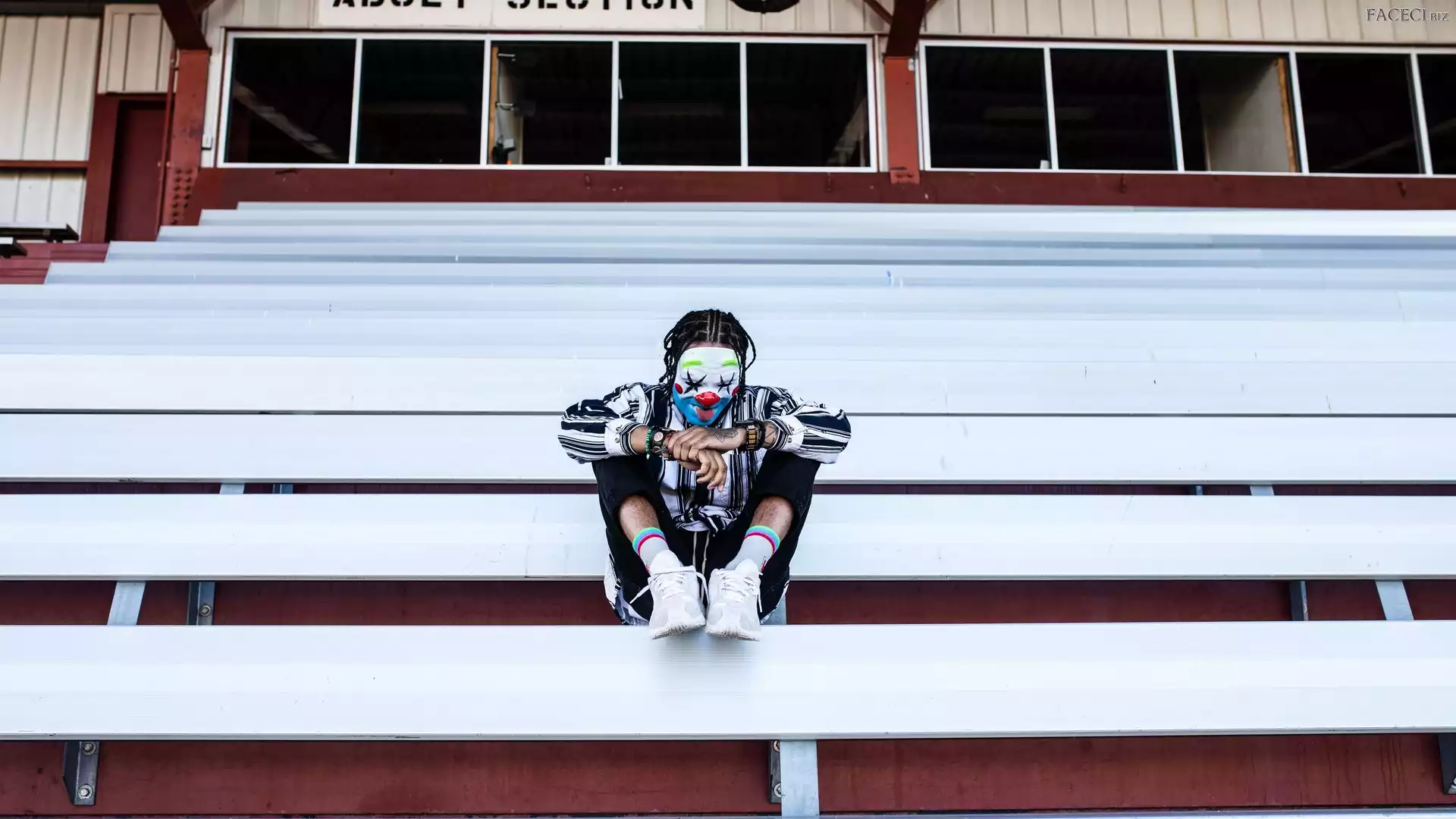 Maska, Ławki, Mężczyzna, Klaun - faceci.biz